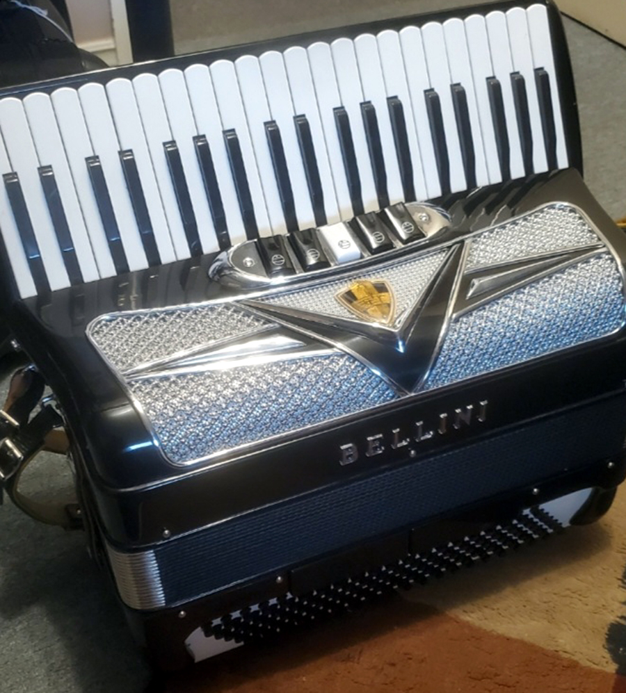(LM), full 41 treble keyboard and 120 basses. Tuned higher than