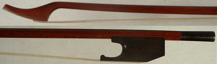 Branded "H.Cirilo" - Professional Brazilian bow maker: New, fine, round pernambuco bow of very fine craftsmanship and playing quality. Nickel-silver mounted ebony frog. Divided ebony button with two rings. | $695 |
