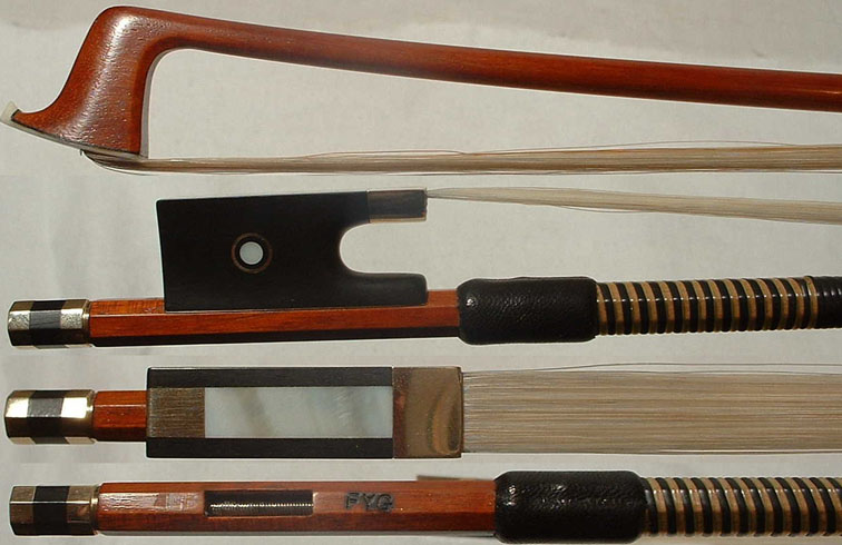 Branded "FYG" - Strong, round, pernambuco bow. Gold-mounted ebony frog. 61 grams. | $1500 |