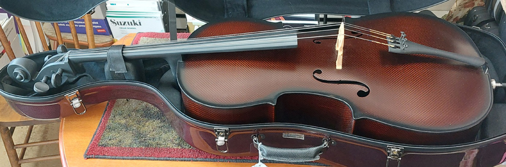 The instrument is setup with Larsen strings and Planetary Tuning Pegs (that require virtually no effort to turn), a Glasser carbon fiber endpin, and a carbon composite Glasser tailpiece with 4 fine tuners for the ultimate tunability. We have refitted the bridge, nut, and sound post to professional standards. As a cellist myself, I find the sound and response to both be very good. It is in like-new condition. (The Eastman Carbon cello case is also available, as a separate purchase.) | $8500 |